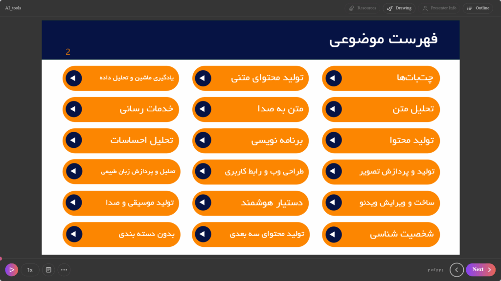 توی این بخش میخوایم آموزش تصویری کوتاه و کاربردی بیش از ۲۰۰ ابزار هوش مصنوعی رو به شما هدیه بدیم؛ این کار با همکاری دانشجویان زرنگ و نخبه مهندسی کامپیوتر و هوش مصنوعی آماده شده؛
